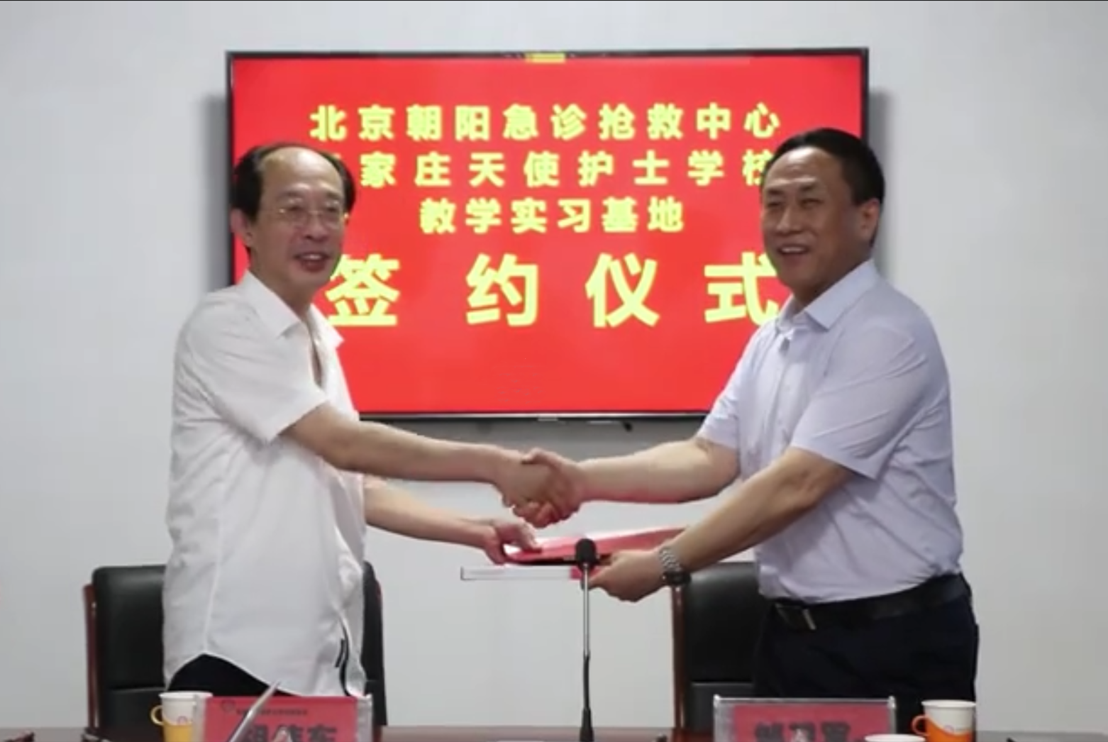 2021年5月8日下午,我校与北京朝阳急诊抢救中心医院临床教学基地合作签约仪式在三楼会议室举行。学校理事长胡伟东、校长马跃华、副校长孙汝棣、安全法制办主任王洪川;北京朝阳急诊抢救中心医院院长邹卫军、副院长杨莉、人力资源部主任魏树新、总护士长孙彩丽出席签约仪式。签约仪式由马跃华校长主持。